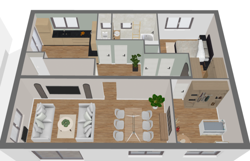 ENTREE, CUISINE EQUIPEE (10.85 m² accès VERANDA BALCON), SEJOUR/SALON (30 m²), 2 CHAMBRES avec placards (11 m² environ), 1 SALLE D'EAU (6 m²), 1 W.C séparé, DEGAGEMENT (8.76 m²).