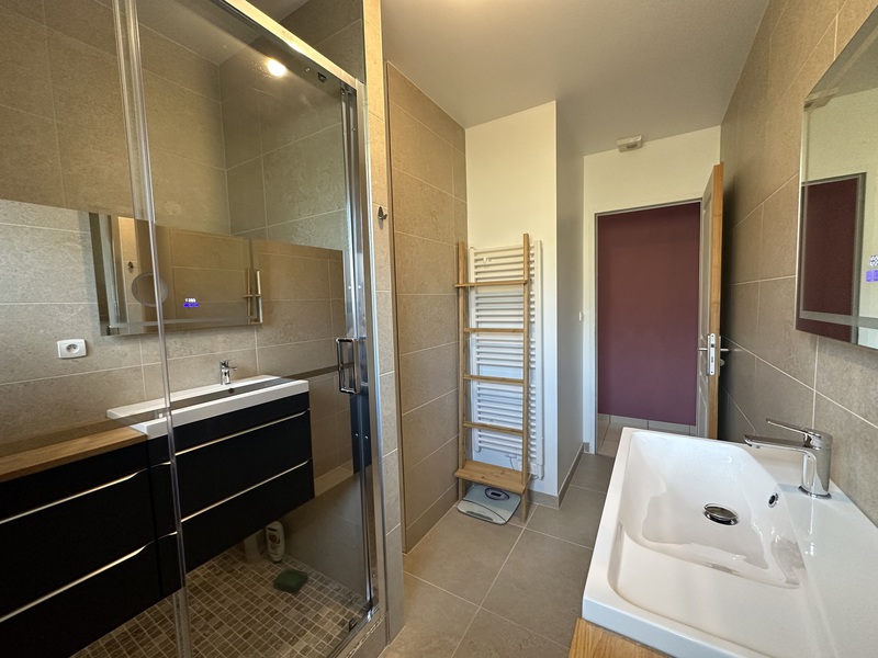 ENTREE, CUISINE US équipée + SEJOUR-SALON lumineux (50 m²), 3 CHAMBRES avec placard muraux (10.84 m² - 10.47 m² - 9.02 m²), 1 SALLE D'EAU rénovée en 2024 (5.59 m²), 1 W.C séparé.