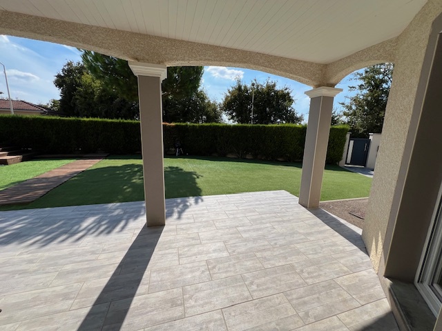 PISCINE semi-enterrée 6m x 4m - TERRAIN DE PETANQUE - Gazon synthétique