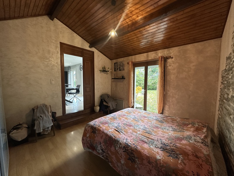 4 CHAMBRES ( 3 équipées placards muraux de qualité, 1 avec avec accès jardin haute hauteur sous plafond mansardé), 1 SALLE D'EAU, 1 W.C. séparé.